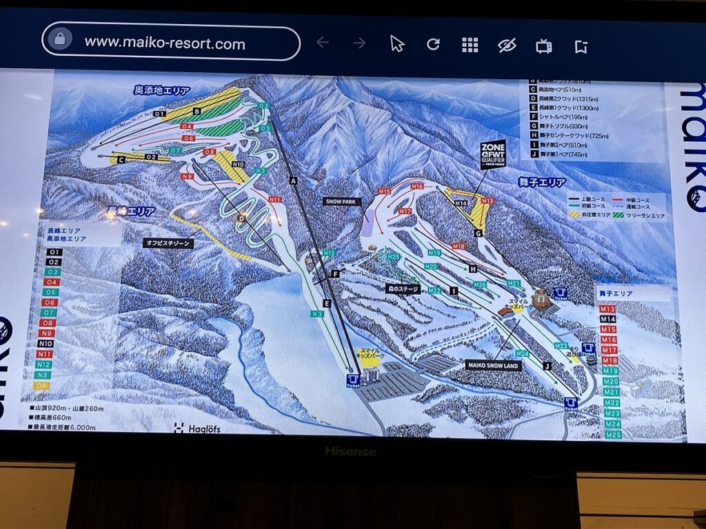 舞子エリアは駐車場からのアクセスが悪いけど、そり遊びや初心者は緩斜面が多い、舞子エリアを選んだ方が良いと思います。