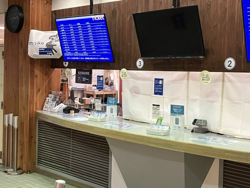 ちなみに、舞子エリアのチケットカウンターはこのような小屋のようでした。