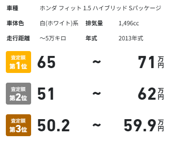 ネット上の査定価格よりは下回ったのが残念でしたが、査定2位の上位価格にはなっているのでおおむね満足はしております。