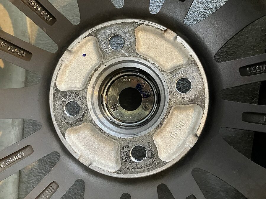スタッドレスタイヤのホイールは汎用性のあるハブ径のため、ホイールの間にハブリングを挟んで使ってました。