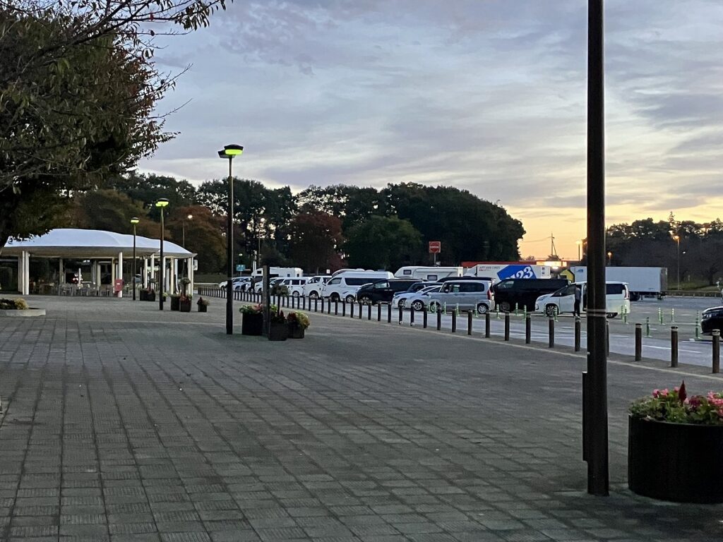 到着した21:30頃には車中泊と思われる車は数台しか停まっていなかったのですが、朝起きてみると周りに数十台程度の車中泊仲間が集まってました。